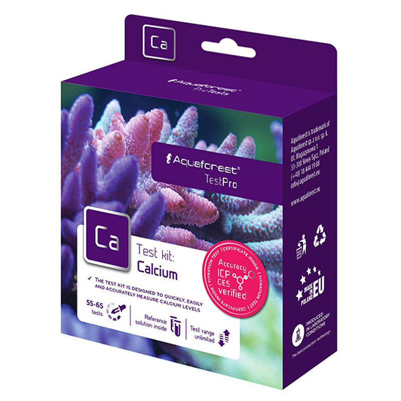 Aquaforest TestPro Calcium è progettato per misurare rapidamente la concentrazione di Calcio in acqua salata. Il Calcio gioca un ruolo importante in molti processi biologici, come ad esempio la costruzione degli scheletri di carbonato di Calcio dei coralli duri. I livelli di Calcio andrebbero analizzati con regolarità, insieme ad altri parametri dell’acqua di importanza critica, come l’alcalinità ed il Magnesio. I livelli di Calcio dovrebbero essere mantenuti in un range tra 400 e 450 mg/l (ppm). Il test contiene abbastanza reagente per effettuare circa 55-65 misurazioni in quel range.All'interno del test c'è la soluzione di riferimento - Ca: 425 +/-1%Istruzioni in italiano.