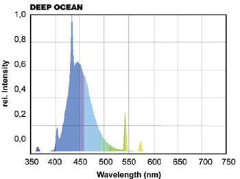 La maggior parte degli abitanti dell’acquario di barriera proviene da ambienti dove la luce blu è molto intensa. POWERCHROME actinic + è stata quindi sviluppata per aumentare la frazione blu in acquari marini. Irradia luce quasi esclusivamente blu a lunghezze d’onda 400-510 nm, con un massimo a 420 nm. Queste lunghezze d’onda favoriscono la crescita di molte specie di coralli in acquario e ne garantiscono le condizioni di luce ottimale.